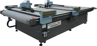 在瑞洲科技的展位現(xiàn)場,RZCRT5-1813智能數(shù)控切割機(jī),其自首發(fā)之日起,全球總銷量已達(dá)數(shù)千臺,經(jīng)市場多年驗證,性能穩(wěn)定、表現(xiàn)卓越,深受國內(nèi)外用戶青睞; 集智能、高效于一體的智能數(shù)控切割機(jī)的,可實現(xiàn)畫線、繪圖文字標(biāo)注、壓痕、半刀切割、全刀切割一次性完成,切割速度高達(dá)1500m/s,振動刀轉(zhuǎn)速高達(dá)18000轉(zhuǎn)。同時標(biāo)配進(jìn)口直線導(dǎo)軌,傳動系統(tǒng)采用進(jìn)口直線導(dǎo)軌、齒條、同步帶,切割精度完全達(dá)到往返原點零誤差。